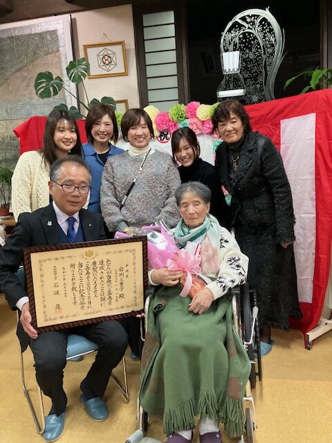 当施設の入所者の永田吉子様が100歳の誕生日を迎えられました。おめでとうございます。【はさみ荘ホーム】