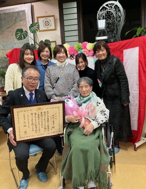 白寿のお祝いをしました。【はさみ荘】 波佐見町長がグループホームはさみ里の白寿祝の後、花束とお祝いをご持参されました。ご家族様もお集まりいた… 続きを読む »白寿のお祝いをしました。【はさみ荘】