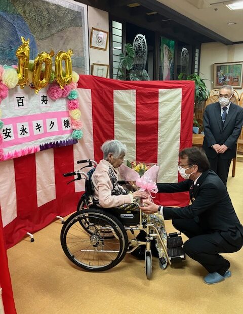 当施設の入所者の永田吉子様が100歳の誕生日を迎えられました。おめでとうございます。【はさみ荘ホーム】 波佐見町の前川町長がお花とお祝いを持… 続きを読む »当施設の入所者の永田吉子様が100歳の誕生日を迎えられました。おめでとうございます。【はさみ荘ホーム】
